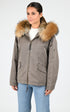 - Capuche bordée de fourrure de raccoon amovible par pressions