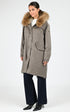 - Capuche fixe bordée de fourrure de raccoon amovible par pressions et doublées de fourrure de lapin