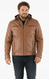Serge Pariente Blouson cuir capuche Erico Hood marron - Grande taille